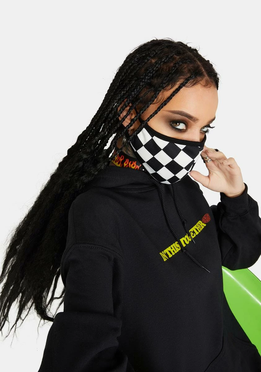 because you have a lot to do. This face mask has a checkered design.