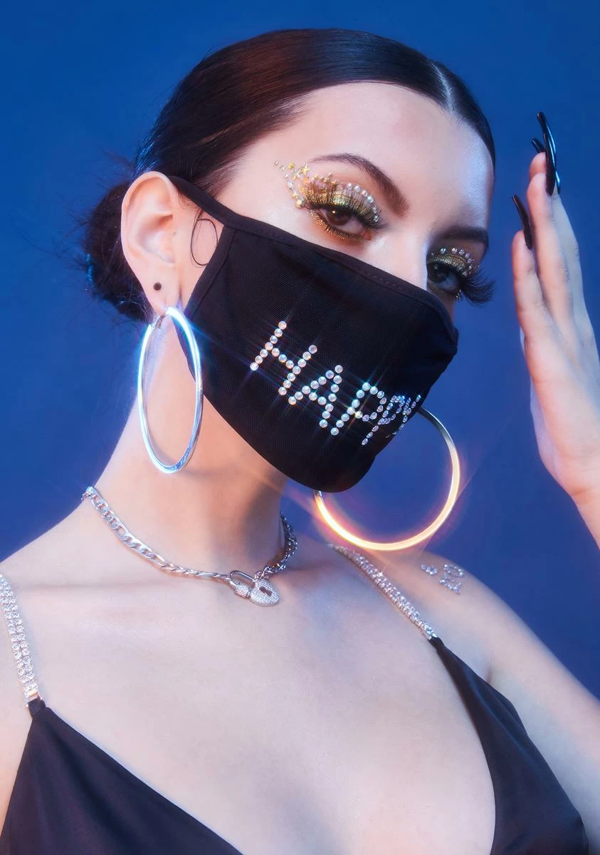 because silence is healthy. This face mask is bedazzled with the word âhelloâ on the front and has stretchy over ear bands.