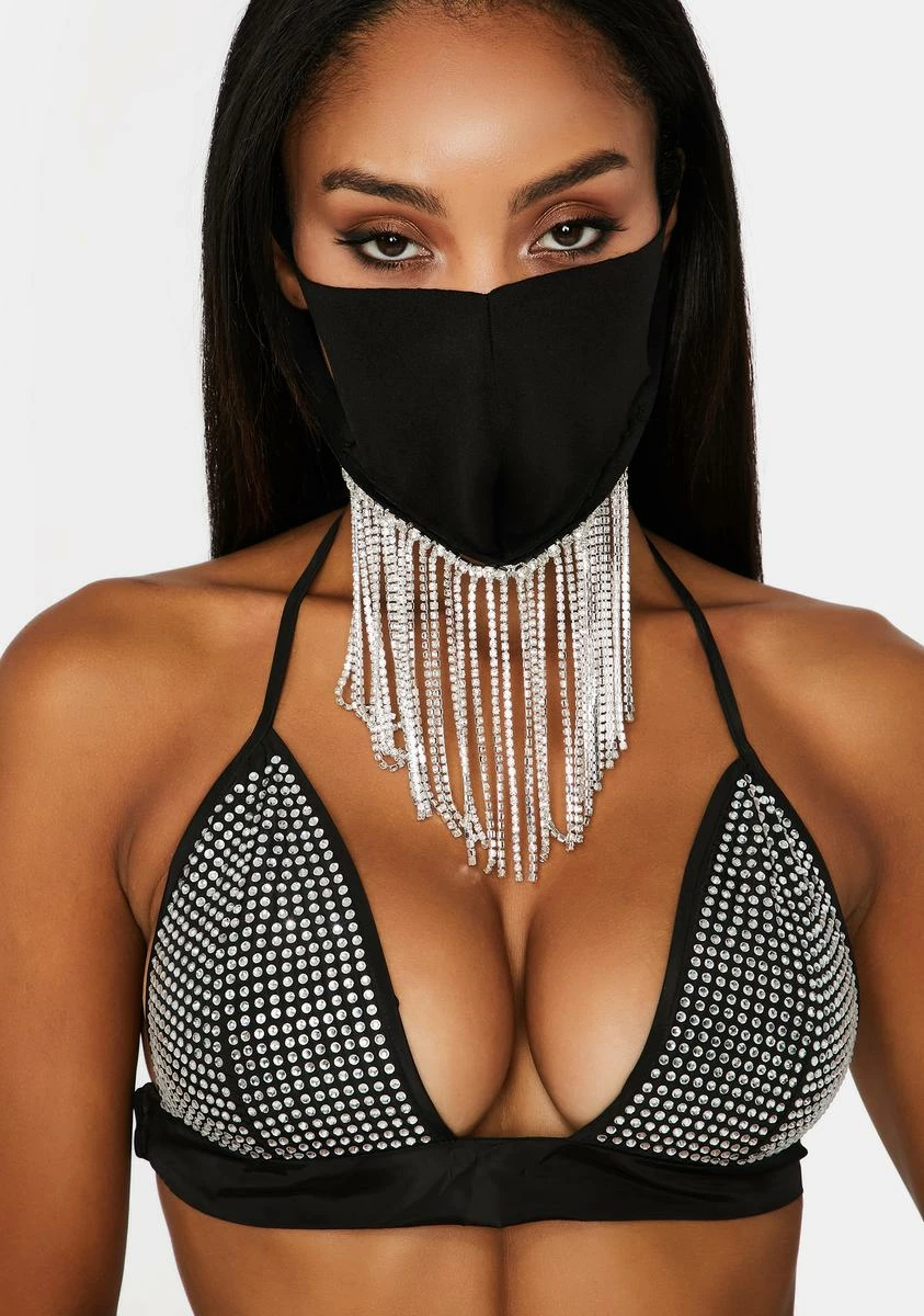 X_PTLHZ Stay Drippy Rhinestone Face Mask