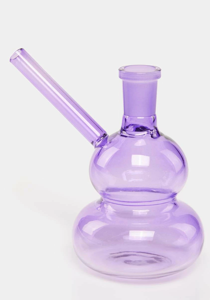 this bong comes in a glass construction, with a stacked cylinder shape, a pipe detail, and an opening at top.
