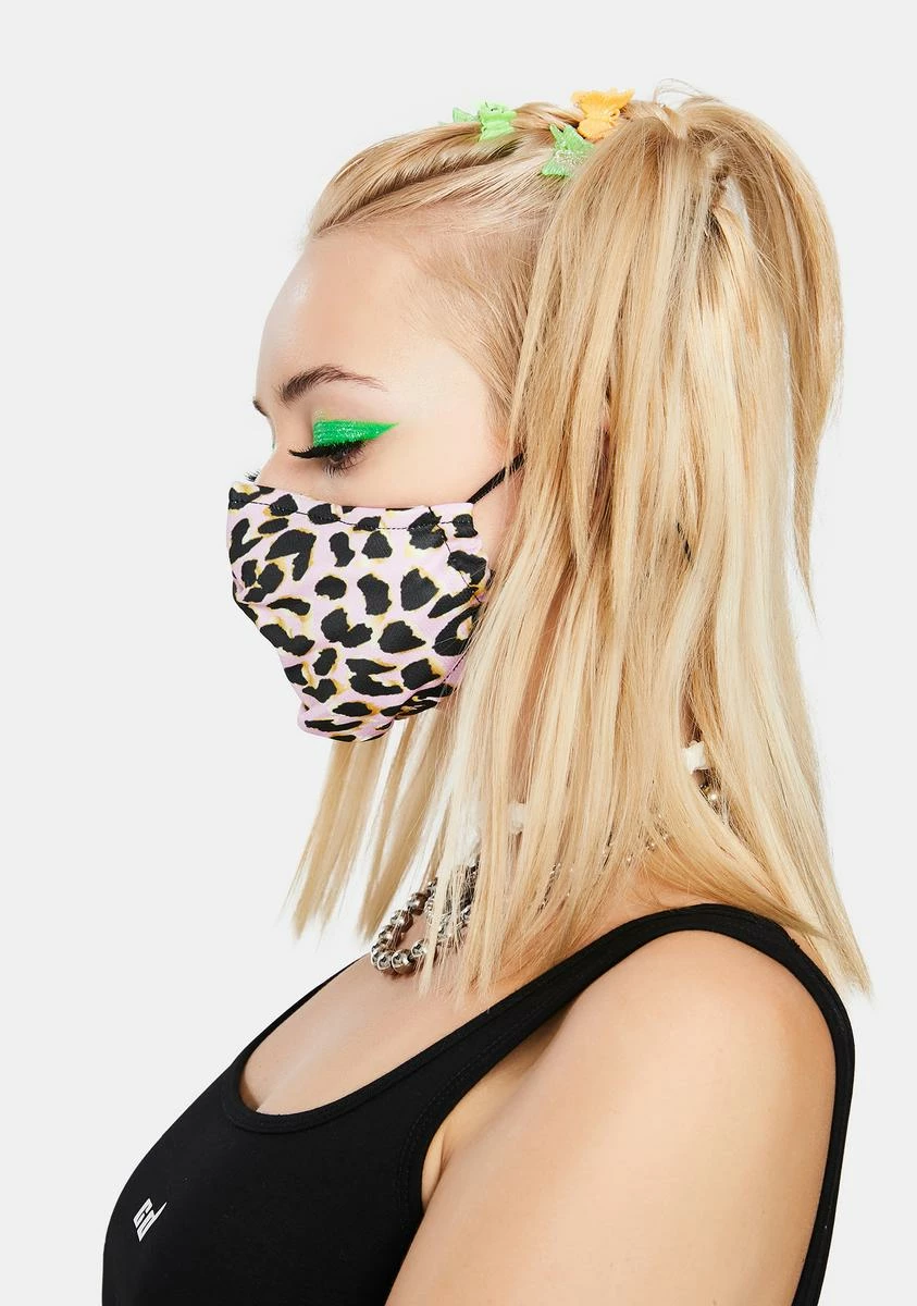 cuz ya never have to go thru it solo! Play it safe with this rad protective face mask that has a pleated construction with a leopard print and stretchy ear bands for a secure fit.
